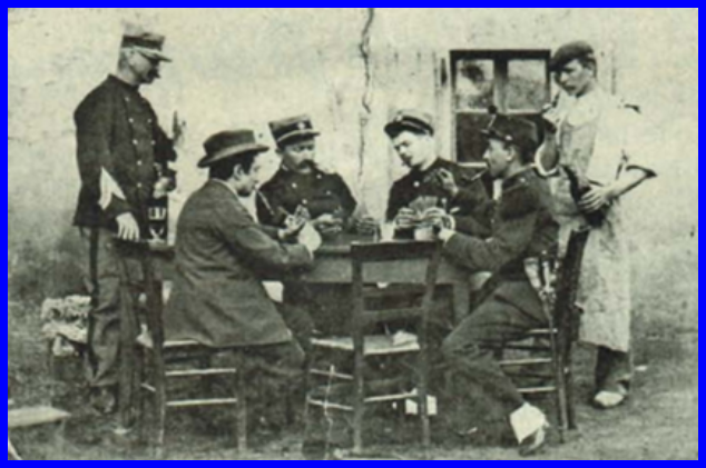 Douaniers dans un café à Frangy (texte François Ducruet sert à boire aux douaniers)