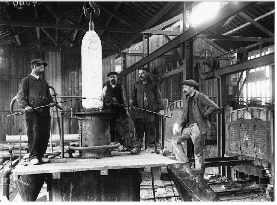 Fabrication d’un obus à l’usine Les Forges et Aciéries Paul Girod à Ugine