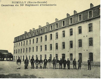 - Le 30ème régiment d’infanterie dont les garnisons sont basées à Annecy, Thonon, Rumilly et Montmélian. Les troupes combattent notamment à Foucaucourt (1914), en Champagne (1915), à Verdun (1916), au chemin des Dames (1917), à Malmaison (1917) et Bligny (1918).