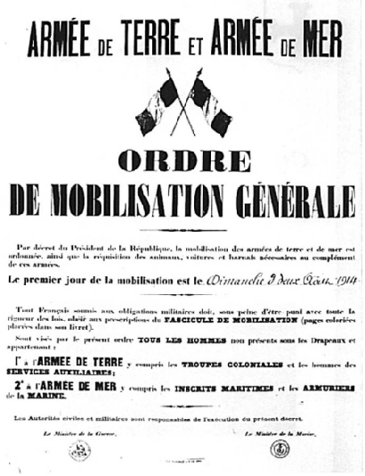 L’ordre de mobilisation générale intervient le dimanche 2 août 1914