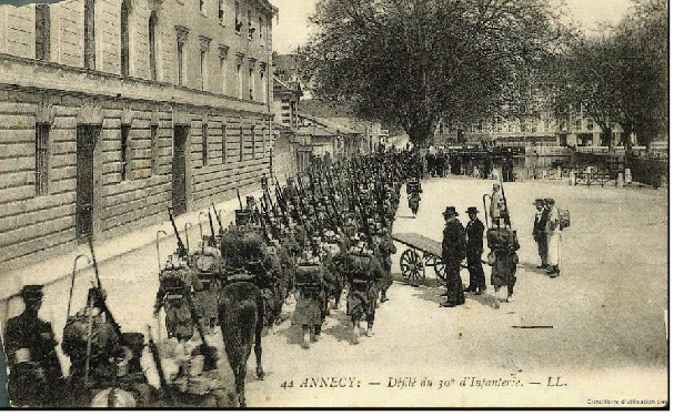 Le 28 juillet 1914, le 11e bataillon des chasseurs alpins qui était en manœuvre est rappelé à Annecy. Le 29 juillet c’est au tour du 30ème de ligne qui se trouve en garnison à Rumilly.