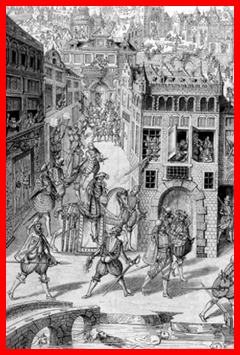 Gravure représentant le massacre de Wassy, de Jacques Tortorel et Jean Perrissin datée de 1570