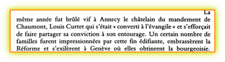 Le 19 avril 1539, le châtelain de Chaumont, Louis Curtet, sera d’ailleurs brûlé vif au Pâquier à Annecy.