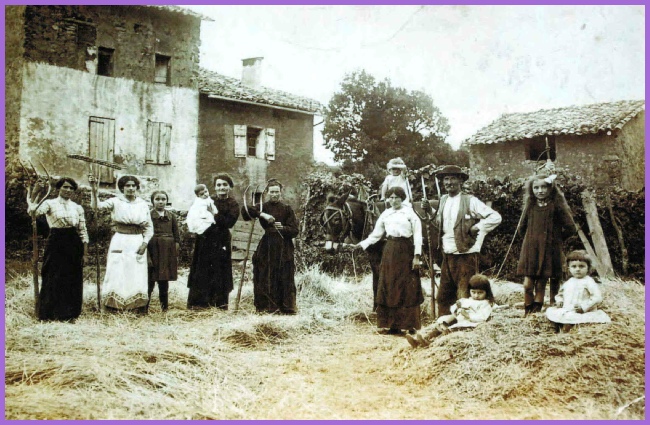 Cette photo unique a été prise devant l’ancienne ferme familiale très probablement durant l’été 1916. Mes arrières grands-