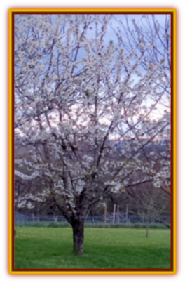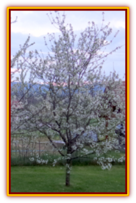J’ai planté en 1995 un merisier qui m’a été apporté depuis la Hongrie. Il produit des cerises un peu amères qui sont excellentes en confitures et en stérilisation. J’ai aussi planté en 2003 un cerisier bigarreau qui produit de très beaux fruits après avoir subi pendant de nombreuses années des invasions massives de pucerons et de fourmis. Il s’est guéri tout seul puisque je refuse tout traitement sur mes arbres et en règle général sur tout ce qui constitue mon jardin.