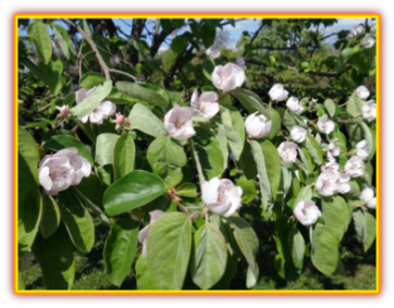 Le cognassier a été planté en 2002. Cet arbre originaire des régions tempérées du Caucase et d’Iran produit des fruits qui servent uniquement à la gelée de coing ou à la pâte de coings. Aucun ravageur n’est connu à ce jour sur cette variété d’arbre.