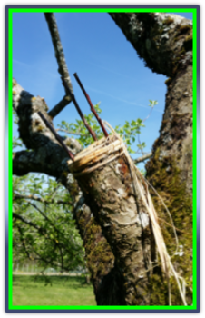 De 1990 à 1995, j’ai veillé à planter chaque année un ou plusieurs arbres fruitiers car il faut être patient avant de pouvoir récolter des fruits. Seul le vieux pommier planté en 1987 par l’ancien propriétaire des lieux est resté avec les noisetiers. Je suis très fière de ce magnifique arbre qui produit de très belles pommes que j’utilise pour préparer chaque année 100 à 120 litres de jus de pommes stérilisé et autant en quantité de cidre qui, s’il n’est pas intégralement consommé, se transformera en vinaigre bien utile dans une maison. Les plus belles pommes sont stockées dans le garage à l’intérieur d’un légumier.