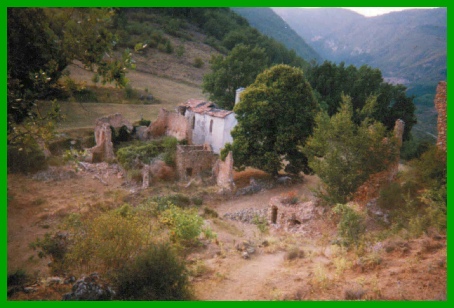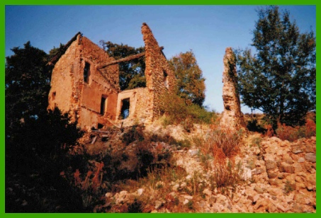 La ferme en ruine et le hameau de la Molière avec la chapelle, son four à pain, le puits et le petit cimetière