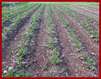 Trois variétés de pommes de terre sont cultivées : la Rosabelle (en précoce), la Chérie (rouge) et l’excellente Charlotte. Nous consommons en moyenne 100 à 120 kg de pommes de terre par an.