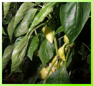 Variétés de poivrons : Pusztagold (longs) et Alma paprika (ronds)