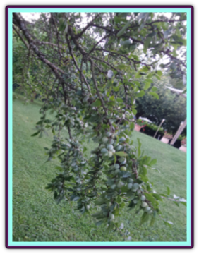 Le plaqueminier est un arbre d’origine de Chine dont le fruit est communément appelé le kaki. Je l’ai planté en 2006 et il produisait déjà de beaux fruits dès 2010. A l’époque j’ignorais qu’il fallait attendre les premières gelées pour cueillir les fruits qui doivent être un peu blets avant d’être consommés. Donc j’ai eu la mauvaise surprise de goûter des kakis pas assez murs. C’est très désagréable car leur goût très astringent provoque comme une sorte d’anesthésie dans la bouche. Le kaki est par contre un fruit d’hiver très intéressant grâce notamment à sa teneur en vitamine C.