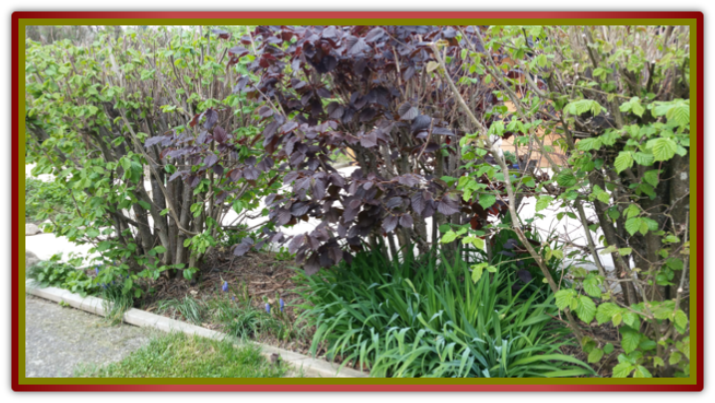 Trois noisetiers ont été plantés par l’ancien propriétaire en 1987 (un noisetier pourpre au centre et deux autres variétés communes). La production n’est guère importante car je dois les tailler régulièrement pour éviter que les branchages ne gênent la production des panneaux solaires installés sur la toiture de la remise pour l’outillage de jardin.