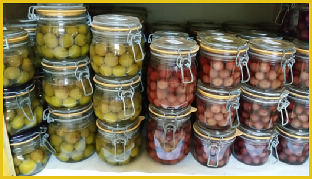 Pour les poivrons ronds récoltés en général en août, une partie est conservée simplement dans du vinaigre, sans stérilisation. Ils sont consommés en hiver en salade.