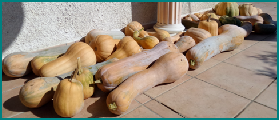 Et enfin les courges (Butternut, courge spaghetti et courge de Nice) récoltées en octobre qui seront consommées jusqu’à la fin avril sont simplement stockées dans le garage, comme les pommes de terre et les oignons.