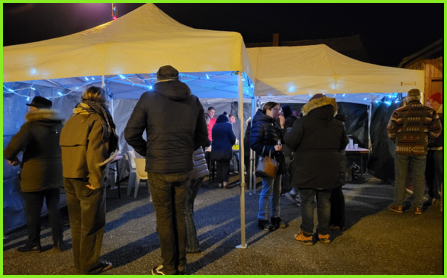 A partir de 20h00, les habitants (petits et grands) semblent apprécier le buffet malgré le froid.