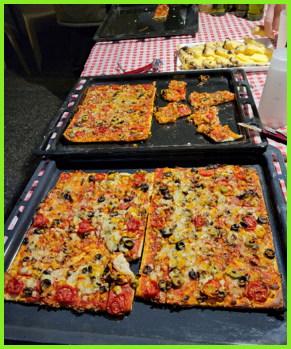 C’est toujours Marc qui s’occupe du four à bois et les premières pizzas sont prêtes.