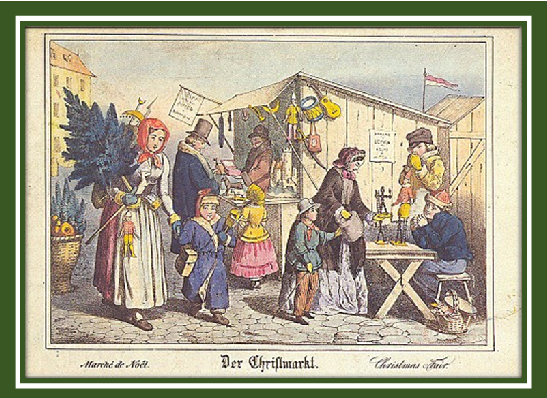 Carte postale ancienne d’un marché de Noël (source Internet)