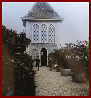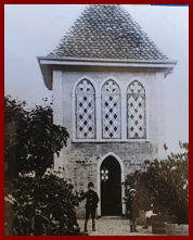 Sur cette ancienne photo il est encore possible de distinguer les peintures murales sur les volières (photo collection privée)