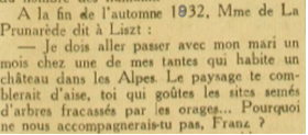 Textes extraits de la page 11 de l’hebdomadaire Gringoire du 19 août 1938 paru sous le titre Liszt ou les amours romantiques par Paul Redoux (source BNF-