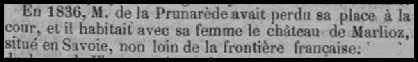 En 1836 le comte et la comtesse habitent dans le château de Marlioz.