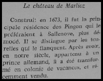 Le château de Marlioz en 1912 (photo source delcampe)