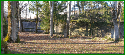 Le parc avec de magnifiques arbres et dans un angle, côté presbytère, une petite construction qui pourrait être une ancienne chapelle