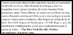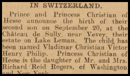 Article paru le 27 septembre 1919 en page 2 dans le journal The New York Herald qui se rapporte à la naissance en Suisse de leur second fils Waldemar (source Gallica-
