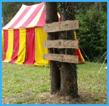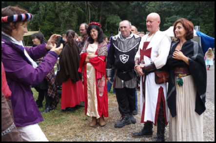 Après cette belle démonstration de force, le public assiste à un mariage celte célébré en plein air par un druide ou une prêtresse à l’intérieur d’un cercle tracé au sol dans le sens des aiguilles d’une montre.