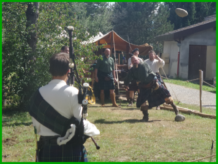 Dès mon arrivée, je suis intriguée par un groupe d’hommes en kilt qui, à tour de rôle, lance un tronc d’arbre de belle dimension et d’un poids respectable (selon Wikipédia le tronc d’arbre mesure entre 5 et 6,5m et il doit retomber perpendiculairement sur le sol).