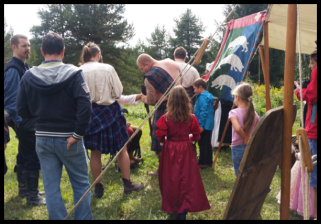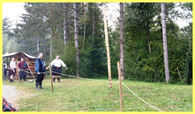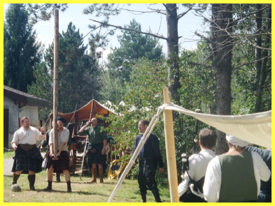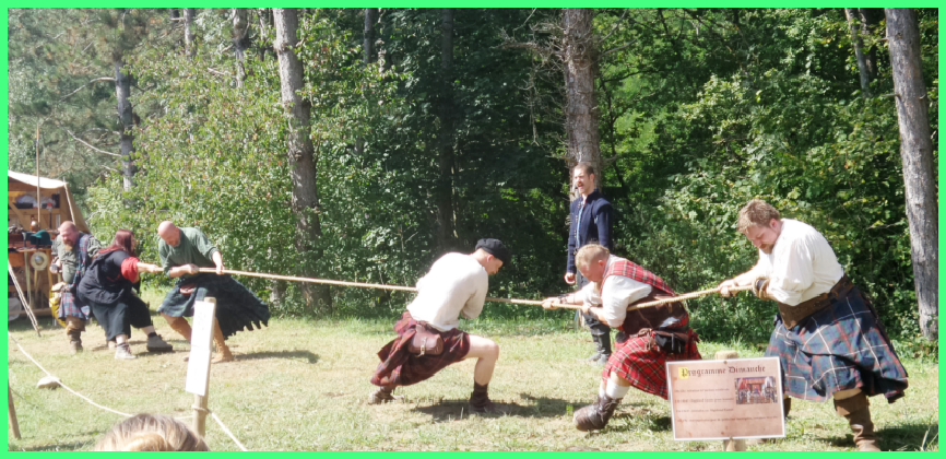 C’est Mélanie de la Confrérie des Centaures qui m’explique les différentes épreuves des Highland Games (jeux écossais) dont le lancer du tronc (toss the caber) en est un exemple avec le tir à la corde (tug of’war) et le lancer du caillou (open stone et braemer stone).