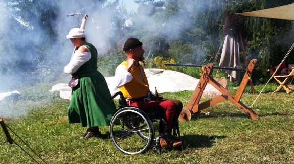 Dimanche matin alors que le soleil est enfin revenu, le public est accueilli par l’odeur et le bruit de la poudre. Cette arme à feu basée sur l’explosion de la poudre noire nous est présentée par la troupe l’Herpaille de Saint-Martin.