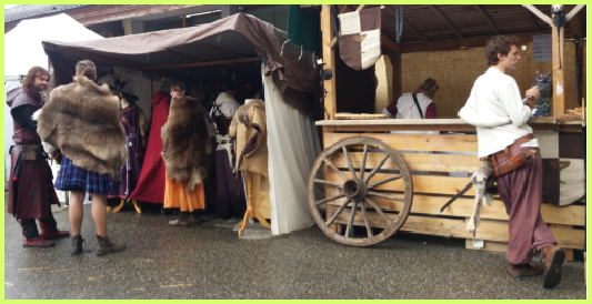 Ci-contre une reproduction d’une rue marchande au moyen-âge