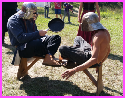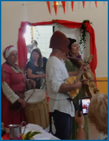Un peu plus loin la compagnie d’animation l’Esbaudye nous invite à nous divertir en musique avec Dame Cousine, Damoiselle Elodie et