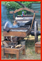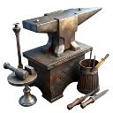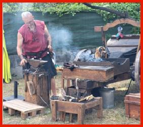 Un forgeron en plein travail sur son enclume.