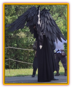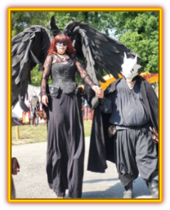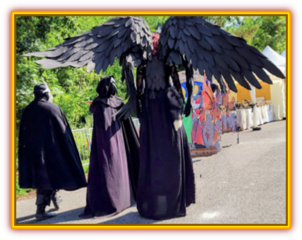 Une magnifique sorcière de la Confrérie de la Lune d’une taille extraordinaire accompagnée par des chasseurs qui attirent tous les regards.
