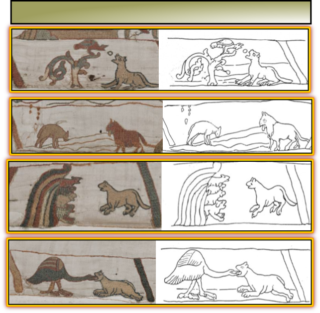 Texte extrait de la page 22 de l’ouvrage Les fables dans la tapisserie de Bayeux écrit en 1934 par Hélène Chefneux