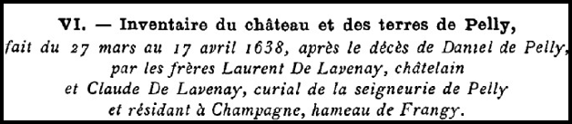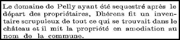 Durant la période révolutionnaire, le château de Pelly sera réquisitionné et un inventaire sera réalisé par Claude-
