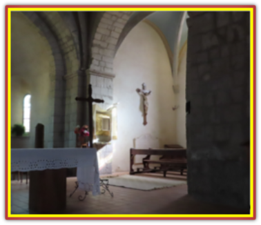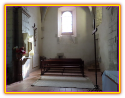 A l’étage une petite chapelle qui doit dater du 16ème siècle a été réaménagée avec un bénitier placé à gauche de l’entrée.