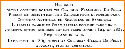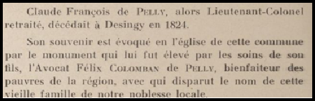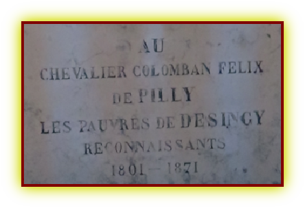 Il est intéressant de noter qu’à partir du 16ème siècle la famille de Pelly fera édifier à l’intérieur de l’église de Desingy datée du 12ème siècle une chapelle funéraire et aura donc le privilège d’avoir un tombeau au-