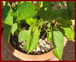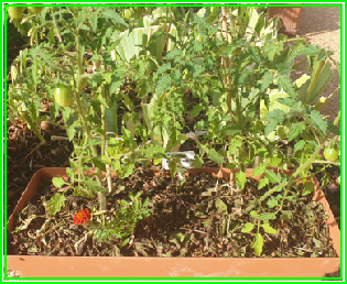 Les tomates et poivrons repiqués dans les pots sur la terrasse n’ont pas trop été endommagés et les premiers fruits mûrissent enfin.
