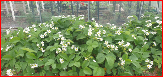Mon parterre de fraisiers très fleuri après le nettoyage nécessaire de printemps.