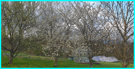 Mes arbres fruitiers (bigarreau, reine-claude et mirabellier) sont en fleurs le 16 avril.