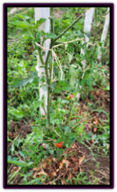 Mais la nature n’a pas encore donné son dernier mot en ce mois d’août. Je n’ai pas eu le courage d’arracher les plants de tomates, de courges et de courgettes. J’ai juste débarrassé les haricots qui étaient complètement laminés ainsi que toutes les tomates évrentées. En cette matinée du 4 août, je suis accueillie dans le potager avec des fleurs sur les plants de courgettes, des tomates rouges prêtes à être consommées et des verveines en pleine croissance. J’en suis encore très étonnée.