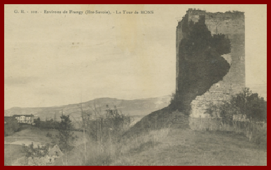Les tours de Mons ou tour de Mons sont les vestiges d’un château du 13ème siècle, siège d’une seigneurie apparue vers la fin du 12ème siècle (vers 1290), ayant appartenu à la famille d’Arlod, vassale des comtes de Genève. Cette construction permettait le contrôle de la vallée des Usses et de la région de la Semine (source Wikipédia).