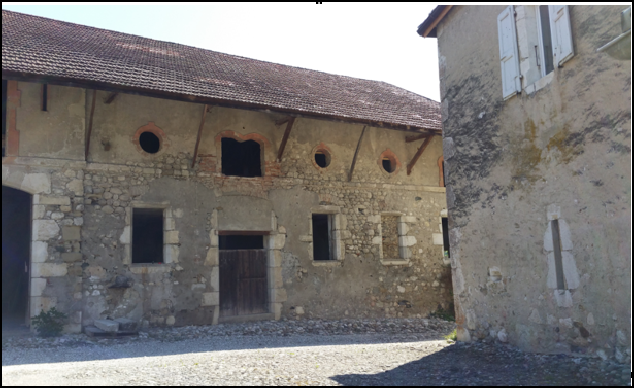 Une partie de la cour avec le bâtiment de la ferme