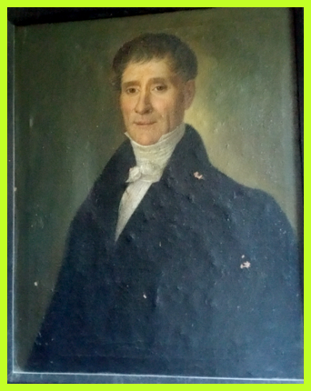 Deux portraits anonymes de personnages ont été conservés dans le château. Le premier qui me paraît être le plus ancien par rapport au costume, doit dater de la période du Directoire vers 1798. L’habillement est allégé, les perruques ne se portent plus, les cheveux sont courts et les gilets sont échancrés.