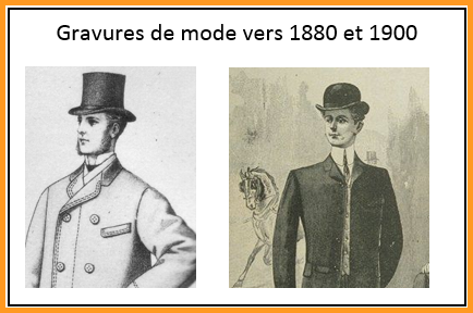 Le second portrait est quelque peu difficile à dater. Je pense qu’il s’agit d’une tenue d’apparat. La redingote avec une chemise à col rond et un nœud papillon peuvent remonter vers 1880-