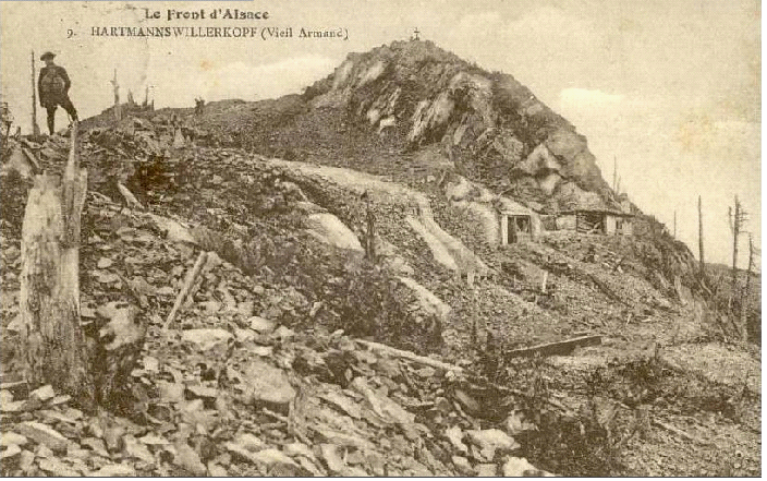 A partir du mois de décembre 1914 le régiment se retrouve à Hartmannswillerkopf (rebaptisé Vieil Armand) en Alsace. Il s’agit d’une montagne située dans les Vosges à 956 mètres d’altitude. En 1914, elle se situait en Allemagne. Les combats furent d’une rare violence et autant terrifiants que ceux de la Marne ou de la Somme (source Wikipédia).